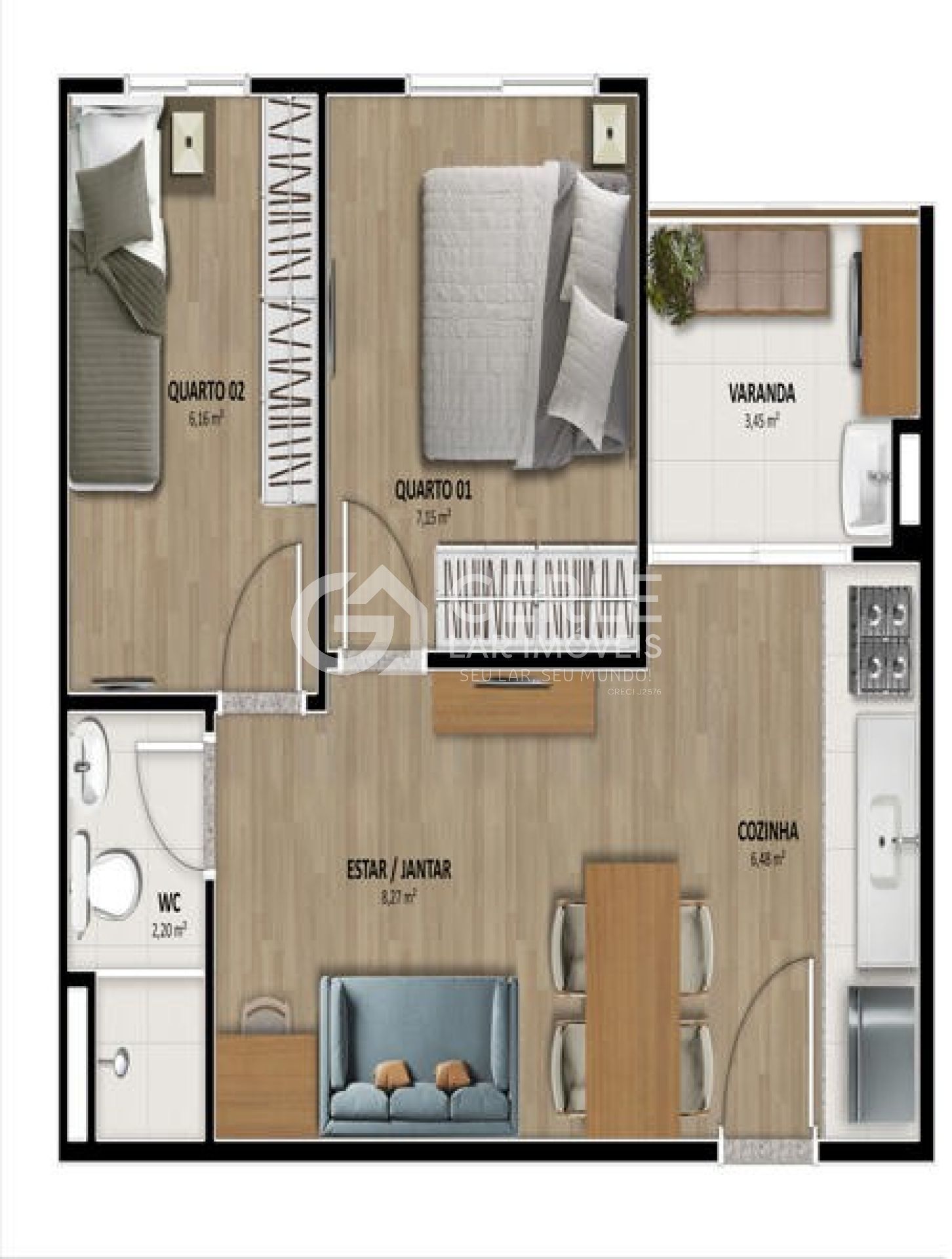 Com apartamentos de 2 quartos com varanda, o projeto une praticidade no dia a dia com uma estrutura completa de lazer, além de fácil mobilidade para toda a cidade.