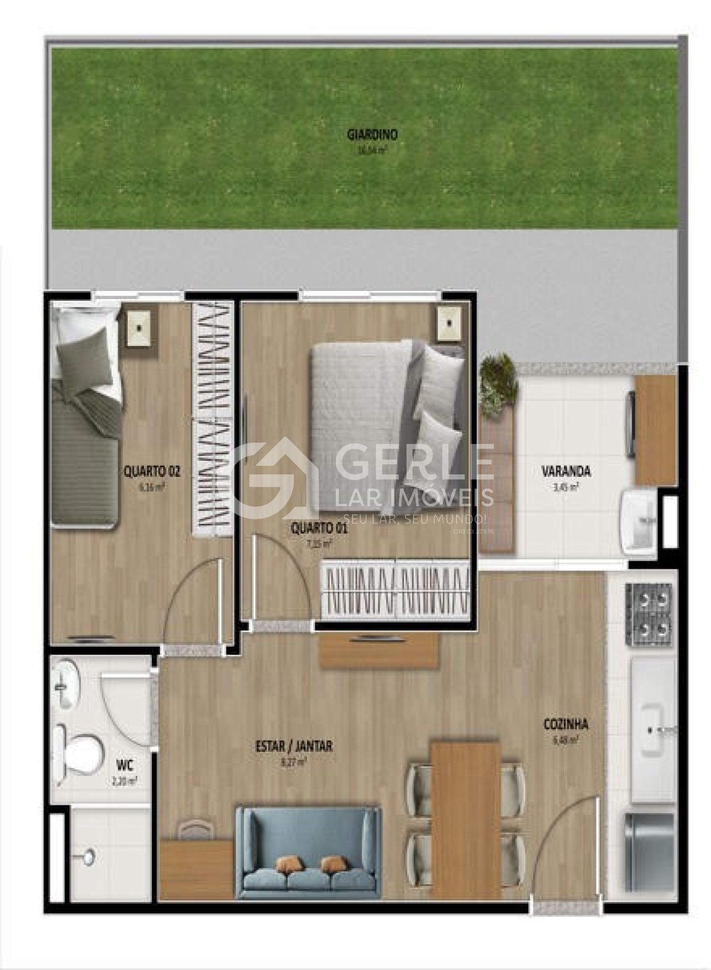 2 quartos com giardino – 50,43 m² e 55,26 m²