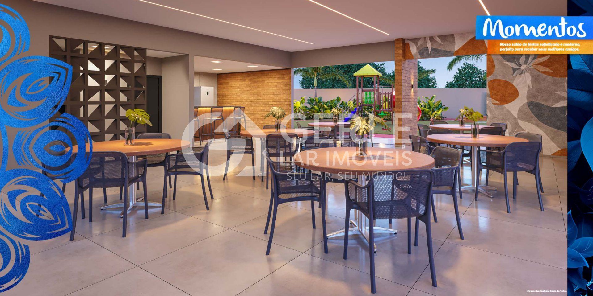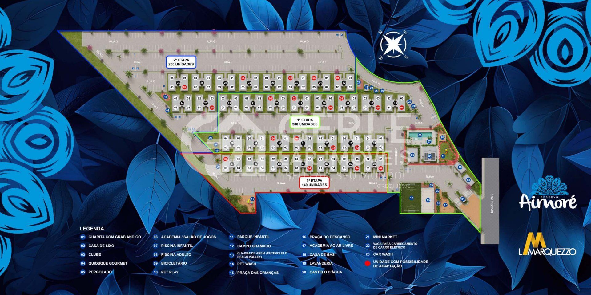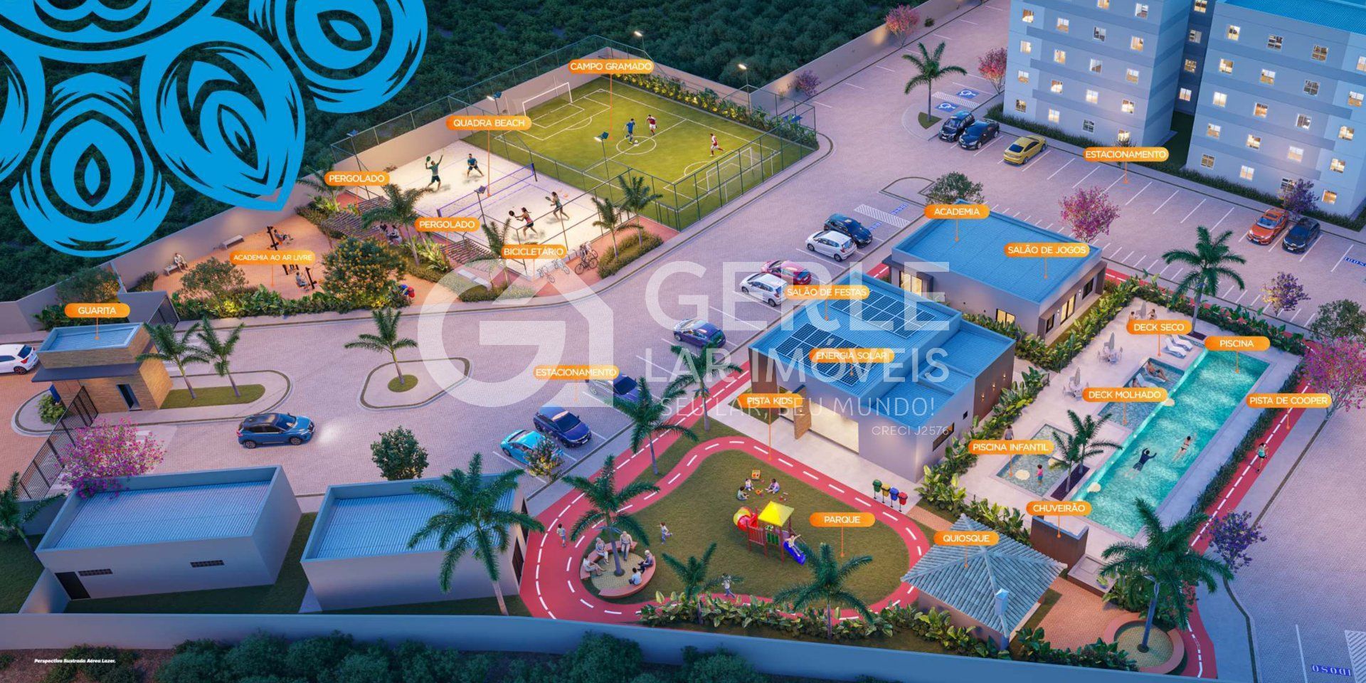Além disso, o condomínio contará com diversos espaços de apoio e convivência, como: